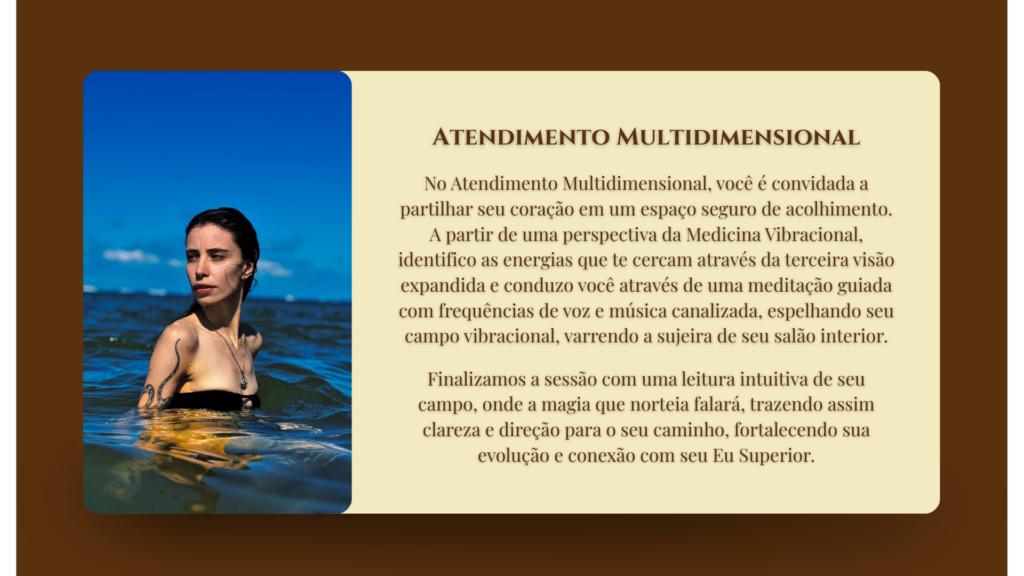 Este atendimento é um convite para receber insights sobre seu propósito, desafios e potenciais ocultos, fortalecendo sua conexão com a própria intuição e com as energias do universo.